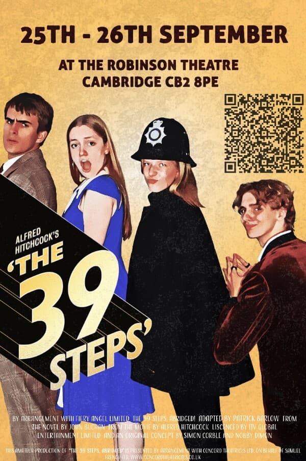 The 39 Steps, abridged by Patrick Barlow, is the one-act version of the Olivier and Tony award-winning smash hit play. It’s a fast-paced comedy thriller in which only four actors play all of the 50+ roles in an exciting tale of a man on the run, to dizzyingly hilarious results.