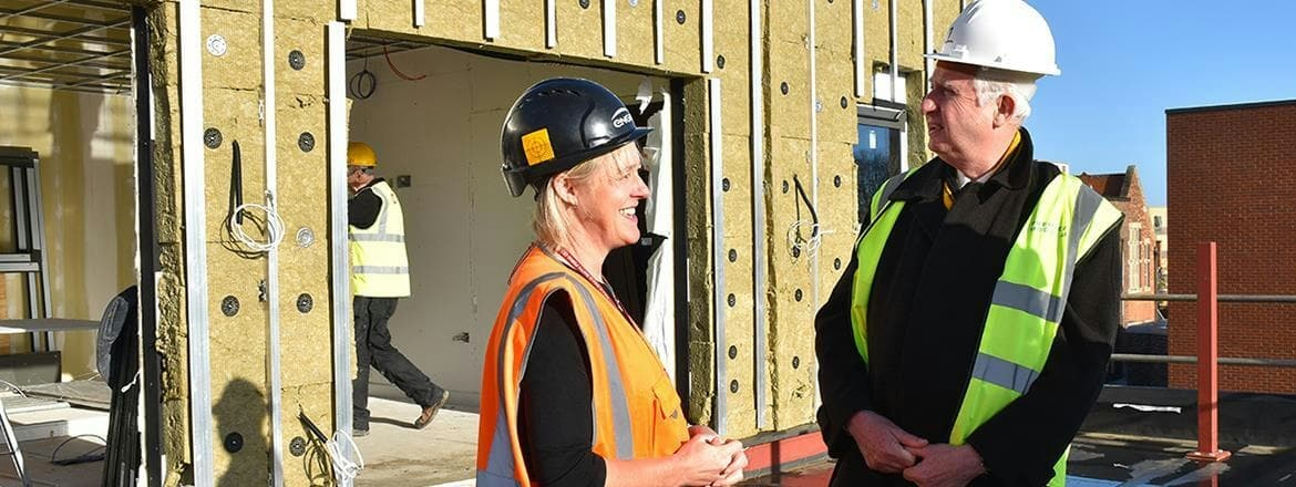 The centre is set to open in Spring 2023, and it is at a stage in construction where Principal Jo Trump and Mr. Zeichner were able to tour the building and discuss its future use as a state-of-the-art study hub built to accommodate increasing numbers of A level students.