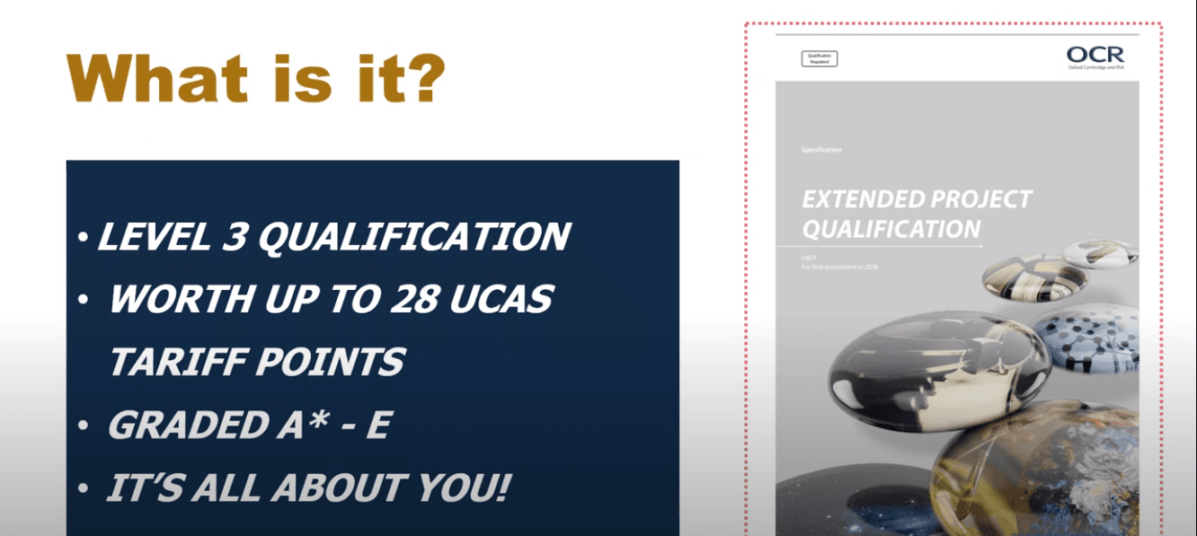 The Extended Project (EP) Level 3 is a compulsory part of your curriculum at Hills Road. It is designed to allow you to work independently and will complement the academic skills you will develop as part of your more traditional A level subject studies.