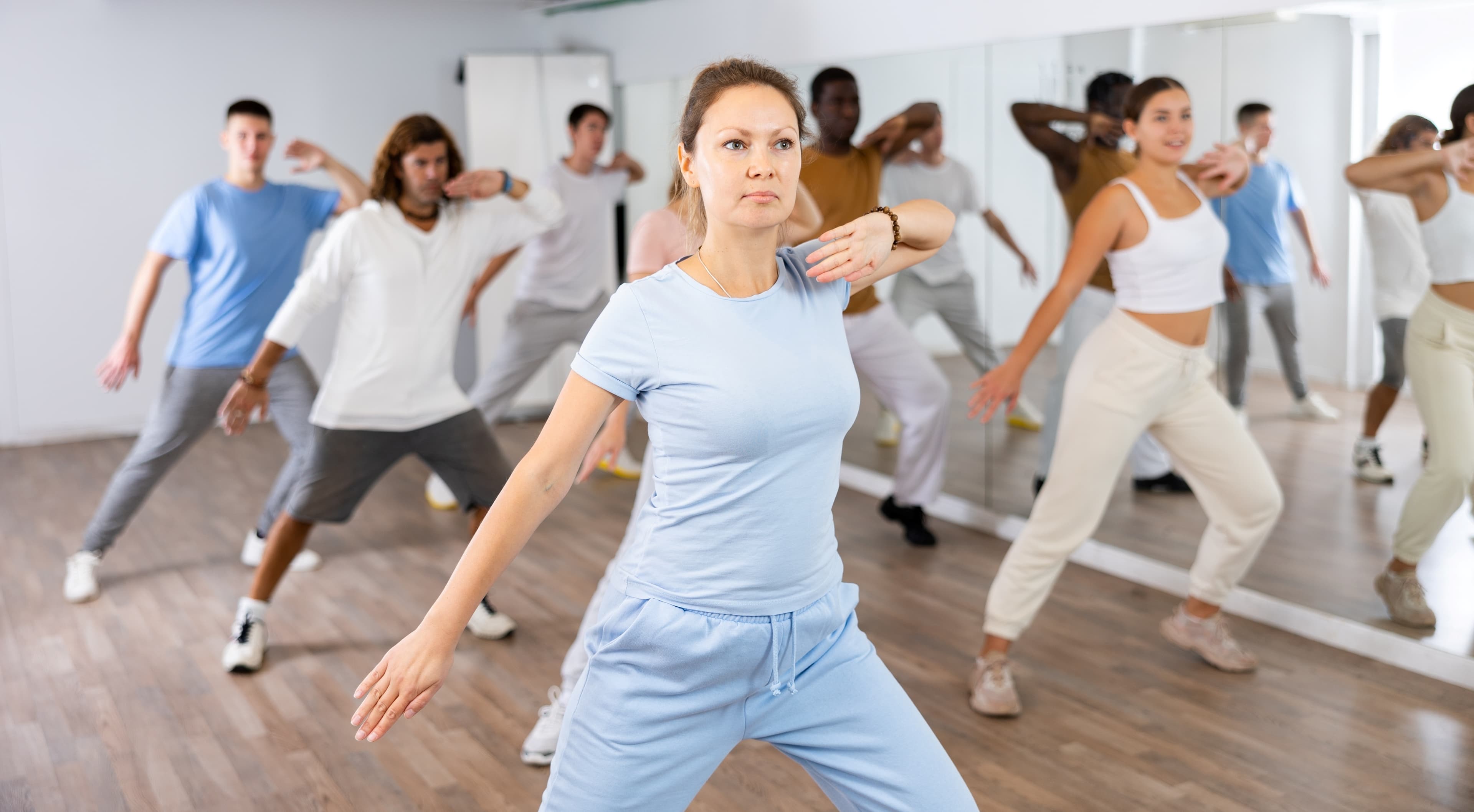 4. Adult Education tutor teaching students in a dance class